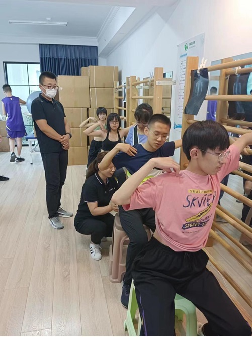 康复训练方法,针对躯干肌群进行拉伸,改善侧弯脊柱锥体扭转角度,使患者脊柱侧弯的矫形效果持续、稳定。
