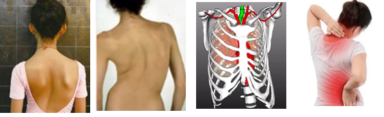 脊柱侧弯发生在胸腰段居多,弯曲严重者会导致胸廓容积下降,影响心肺发育,进而引起心、肺功能障碍或衰竭